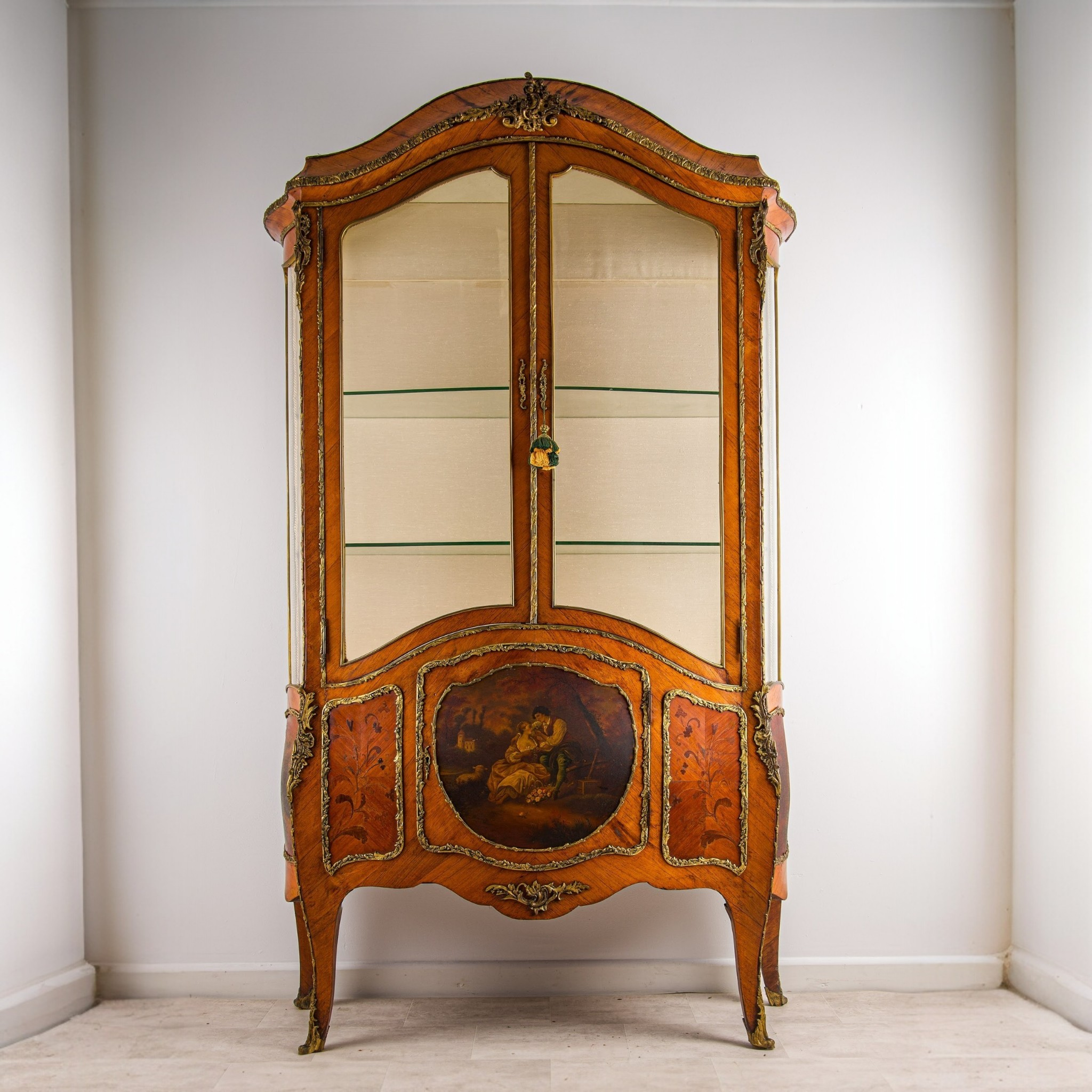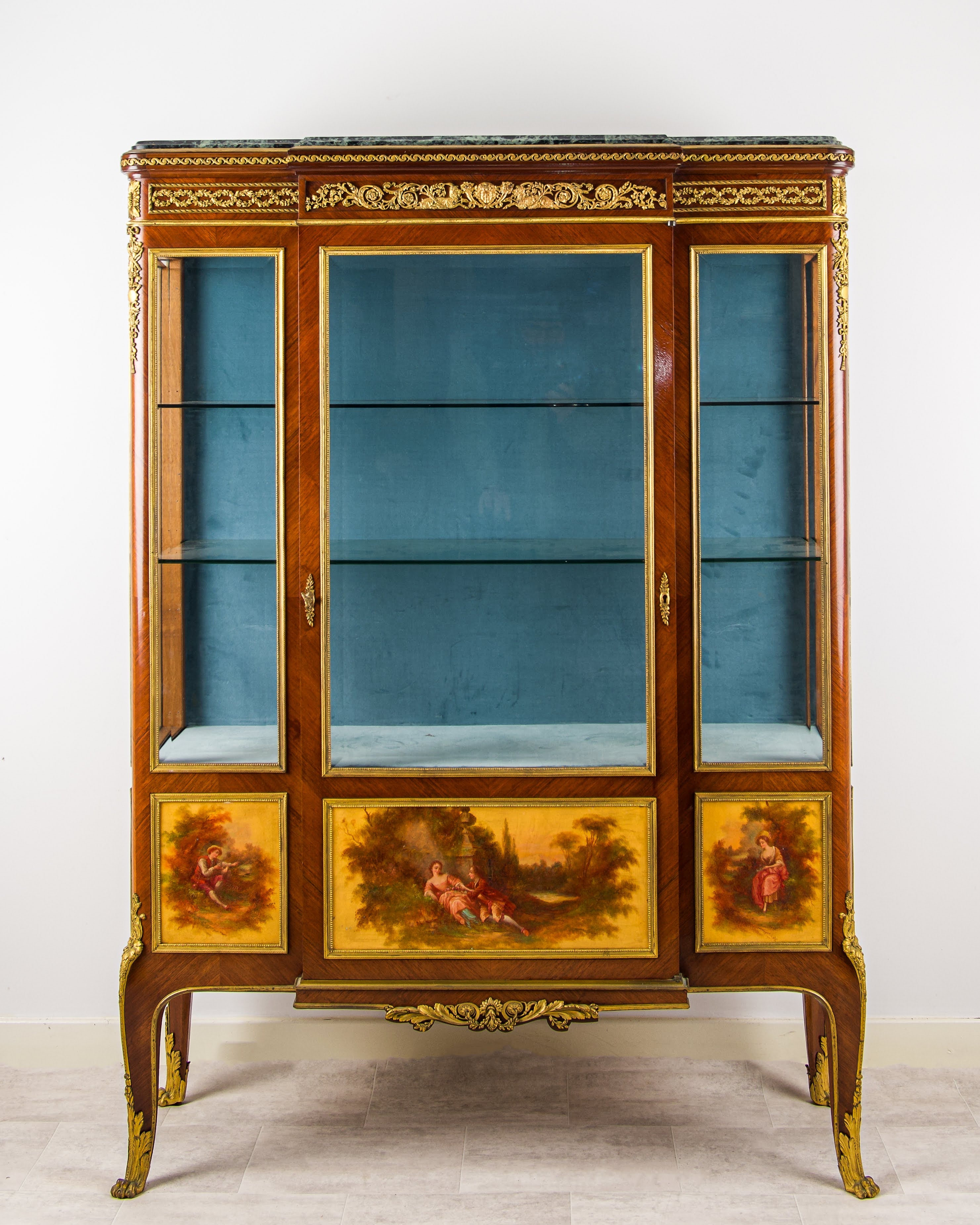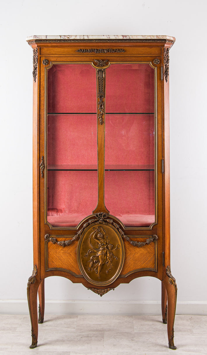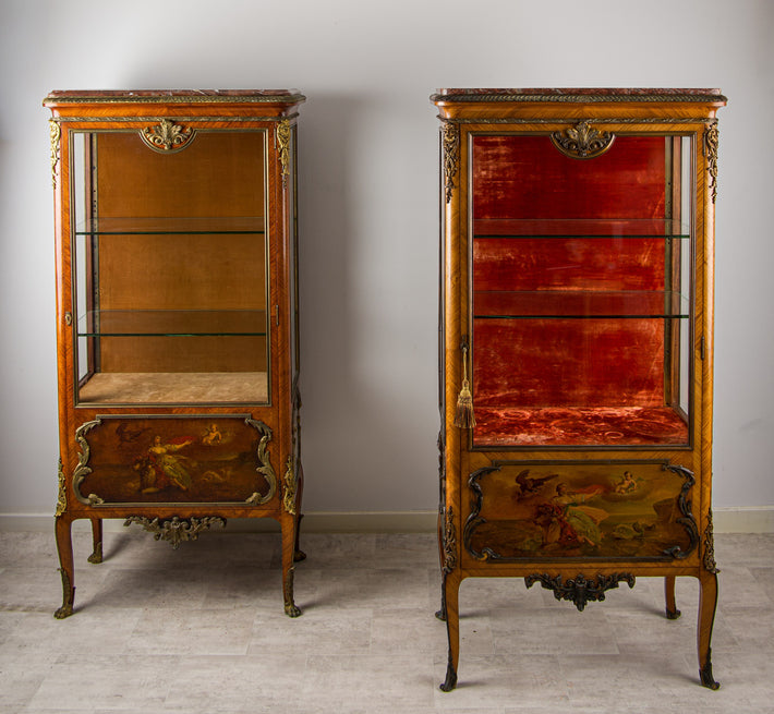 Antique French Kingwood Vernis Martin Vitrine Cabinet With Ormolu Mounts C.1880