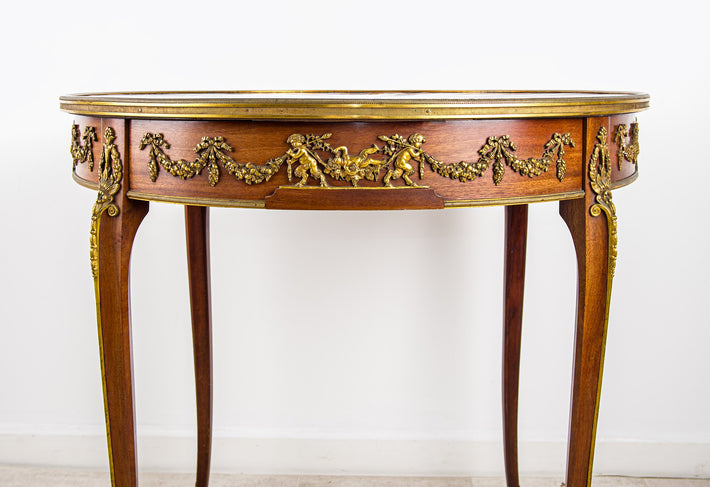 Antique Mahogany Centre Table with Marble Top - Large Round Pedestal Dining / Centre Table