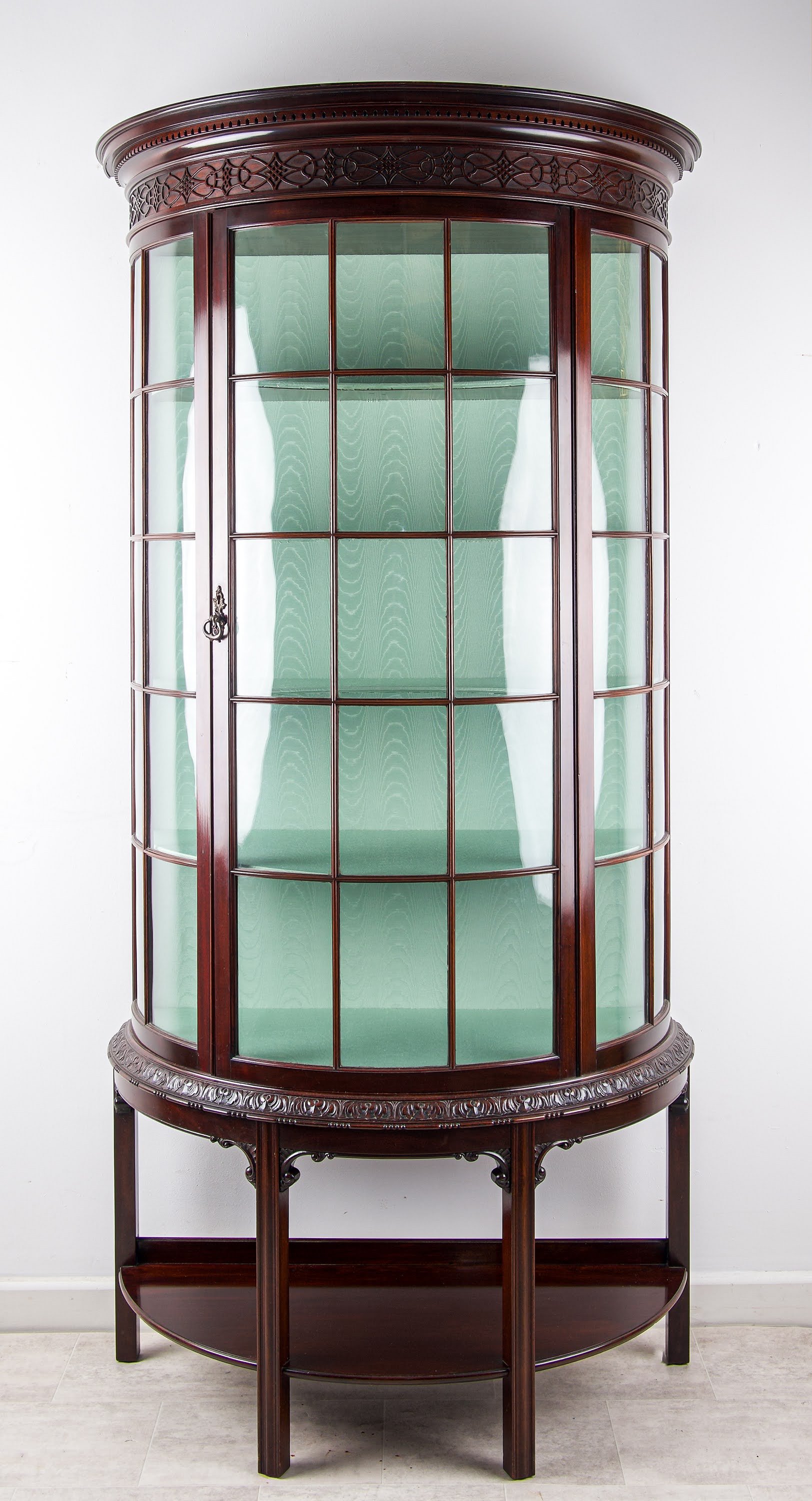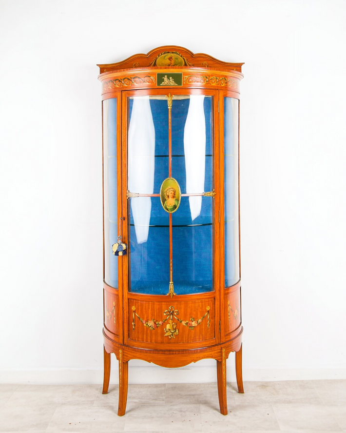 Antique Edwardian Satinwood Painted Display Cabinet Bow Front Vitrine Glass Cabinet