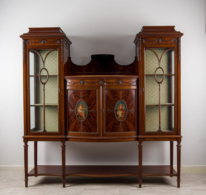 Impressive Victorian Mahogany Inlaid Chiffonier Cabinet - Late 19th Century