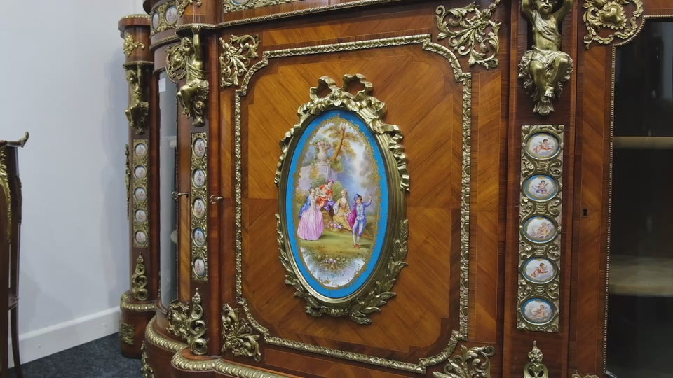 Antique French Ebonised Ormolu Mounted Cabinet with Sevres Style Porcelain Plaques
