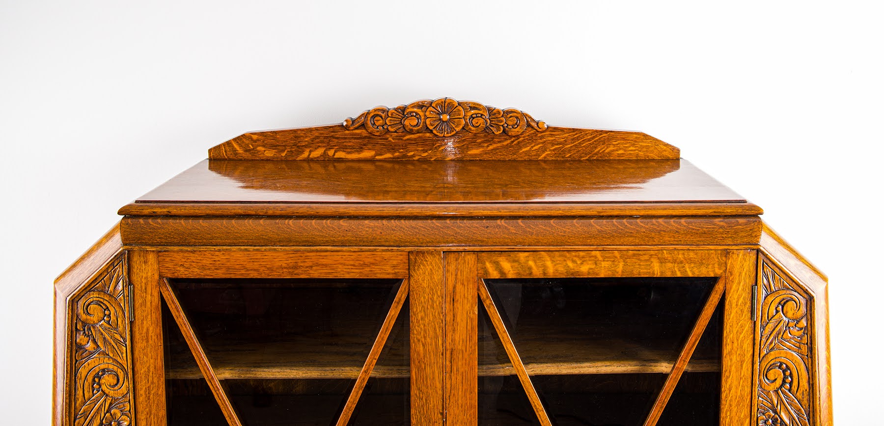 Condition Note: In very good condition for a piece of this age and character. The carved panels are crisp and undamaged throughout - no breaks or repairs to the carving of note. The glazing is original and intact on both doors. The interior shelving is sound. The oak has developed a rich warm golden patina consistent with genuine age and honest use. The structure is solid and stable with no wobble or loose joints. An honest description from a specialist dealer with 60+ years of family experience.