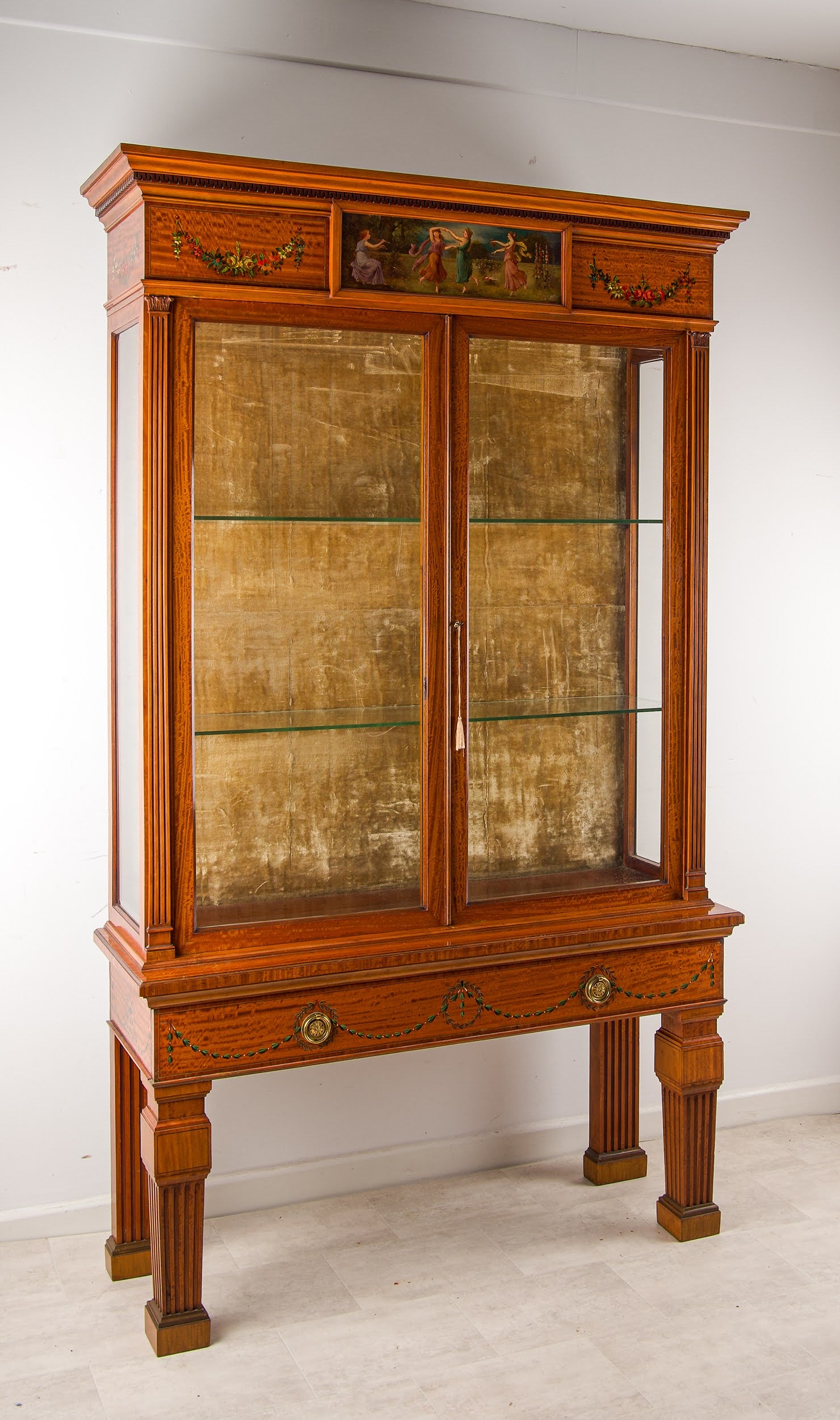 Antique Edwardian Satinwood Painted Display Cabinet on Stand - Hampton & Sons London c.1900