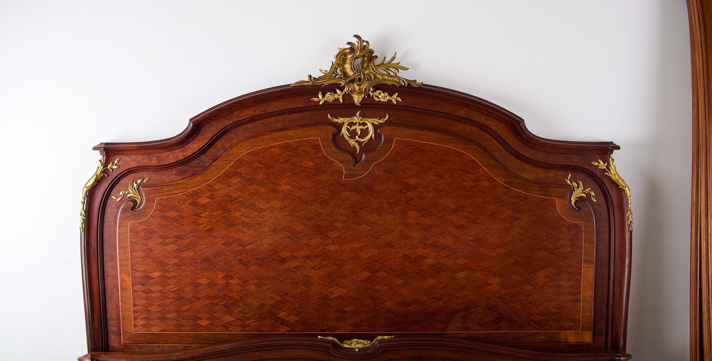 Antique French Kingwood Parquetry & Ormolu Mounted King Size Bed – 5 ft