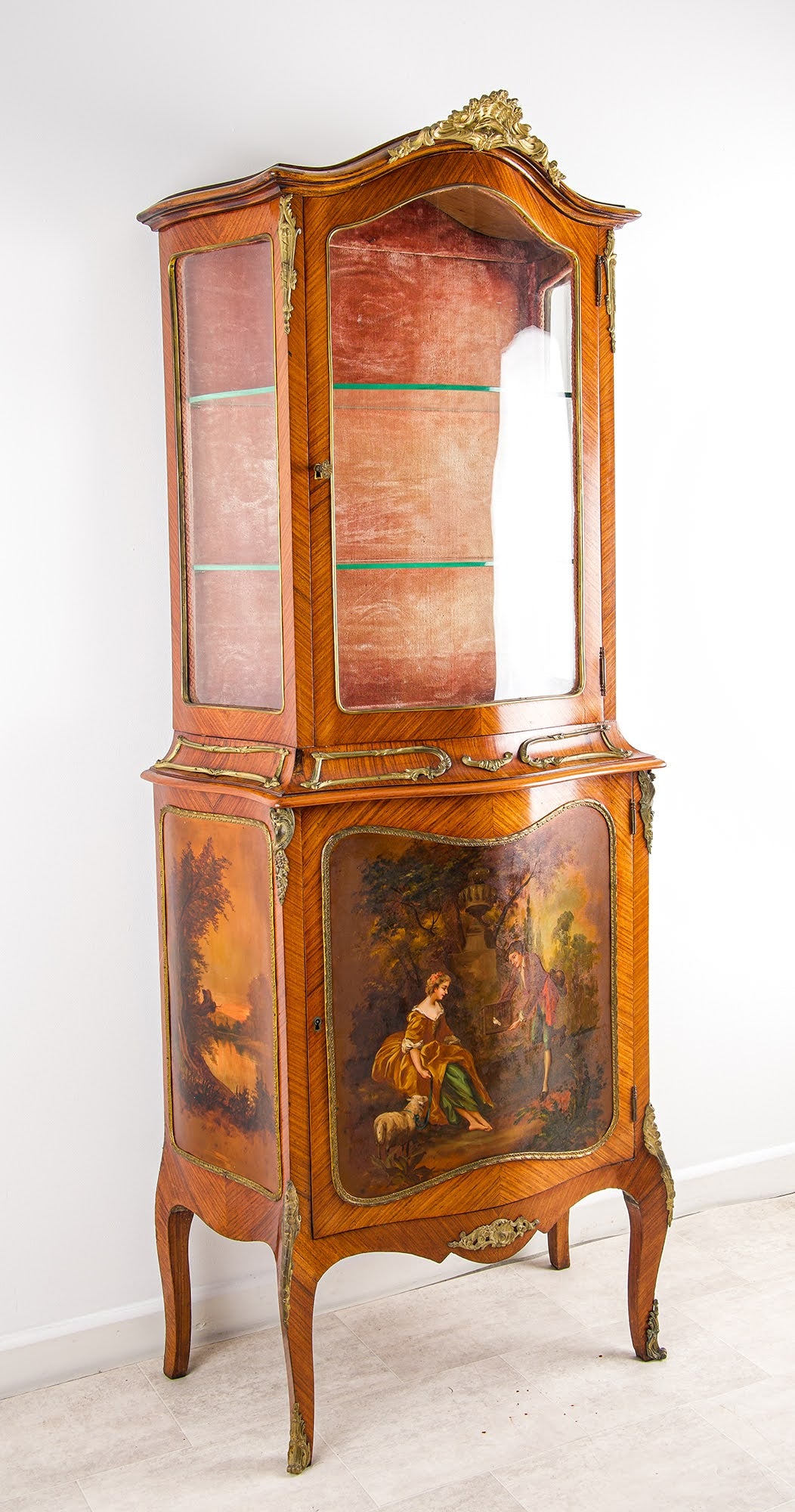 Condition Note: In good condition commensurate with age. The Vernis Martin panels display well with the characteristic depth and warmth of genuine 19th-century painted panels. The kingwood veneers are sound and the ormolu mounts retain good detail and original surface. The velvet linings show age-related wear consistent with genuine use and period. The glazing is intact and the cabinet is structurally sound and stable. An honest description from a specialist dealer with 60+ years of family experience.