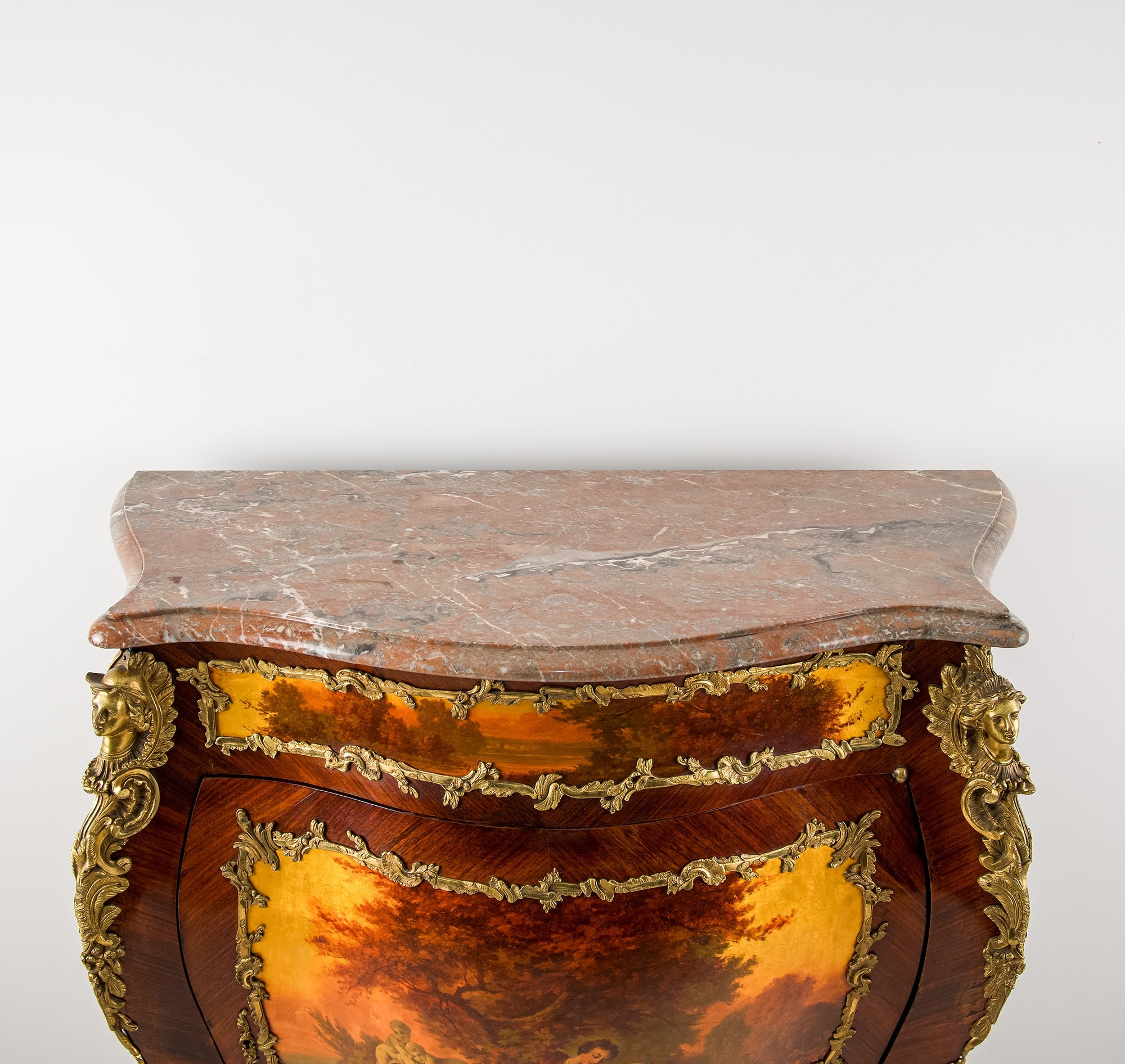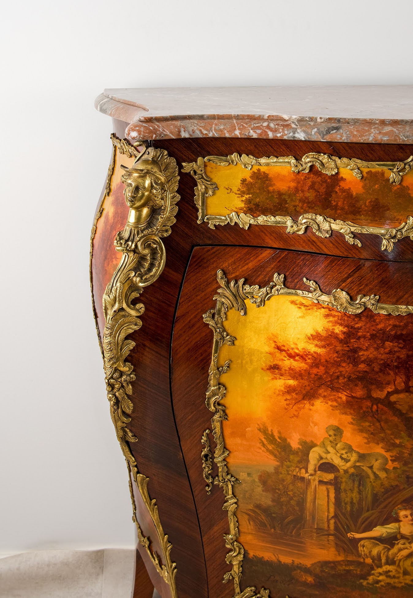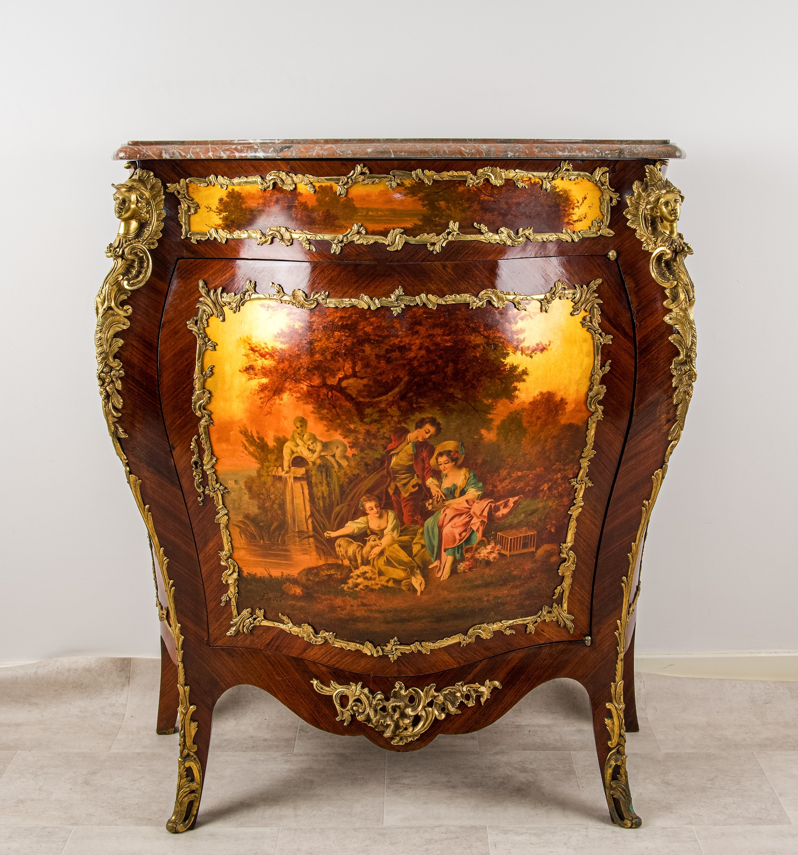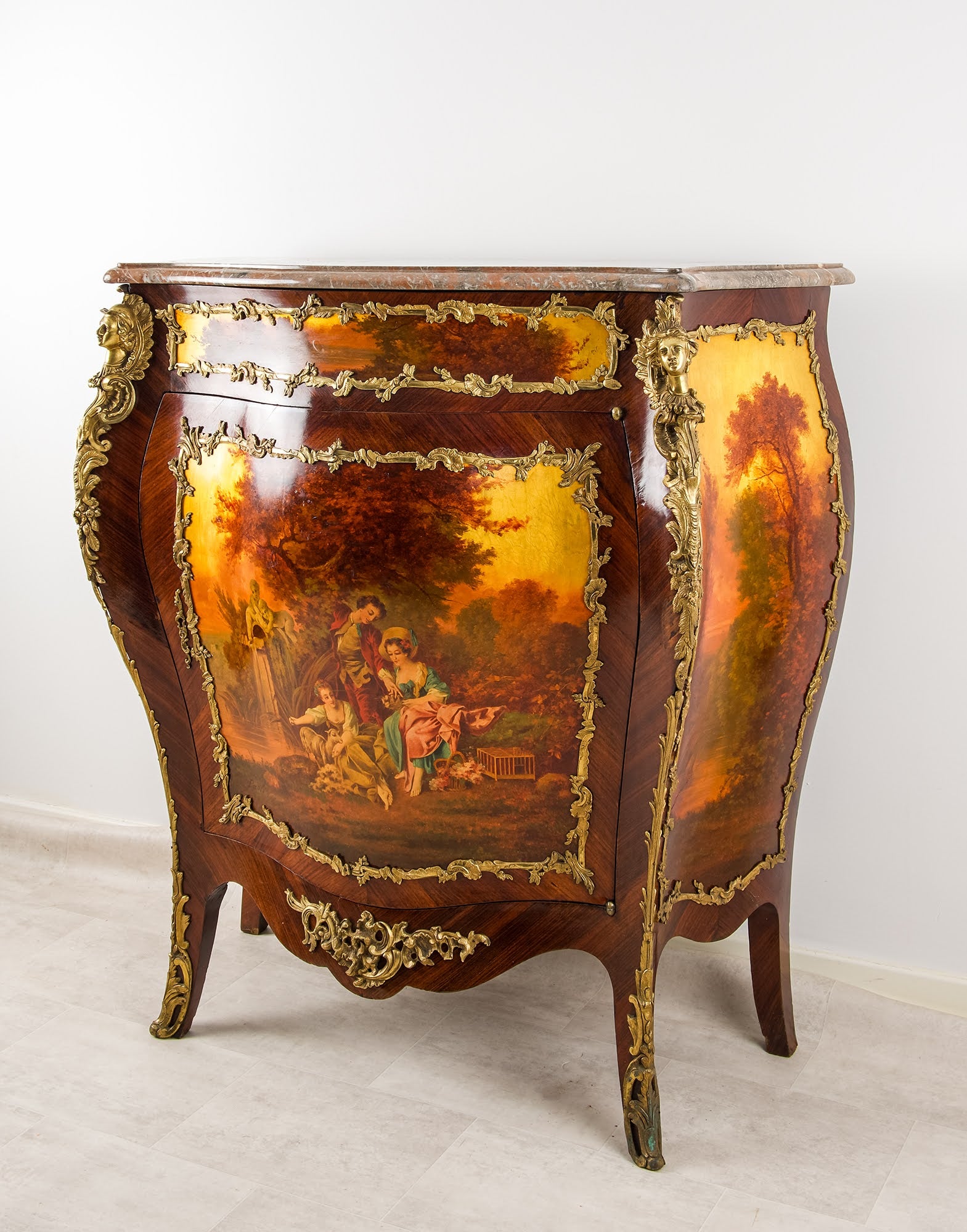 Antique French Vernis Martin Bombe Cabinet with Marble Top & Ormolu Mounts, c.1900