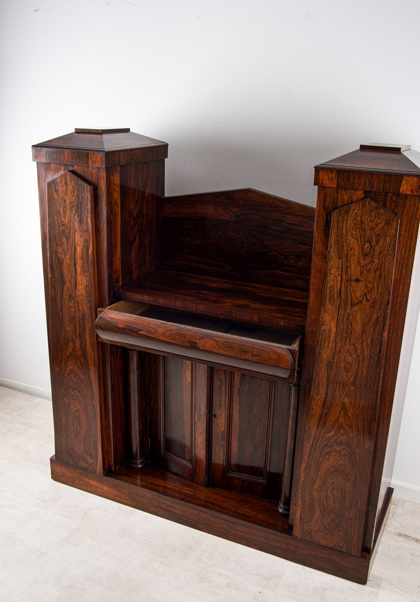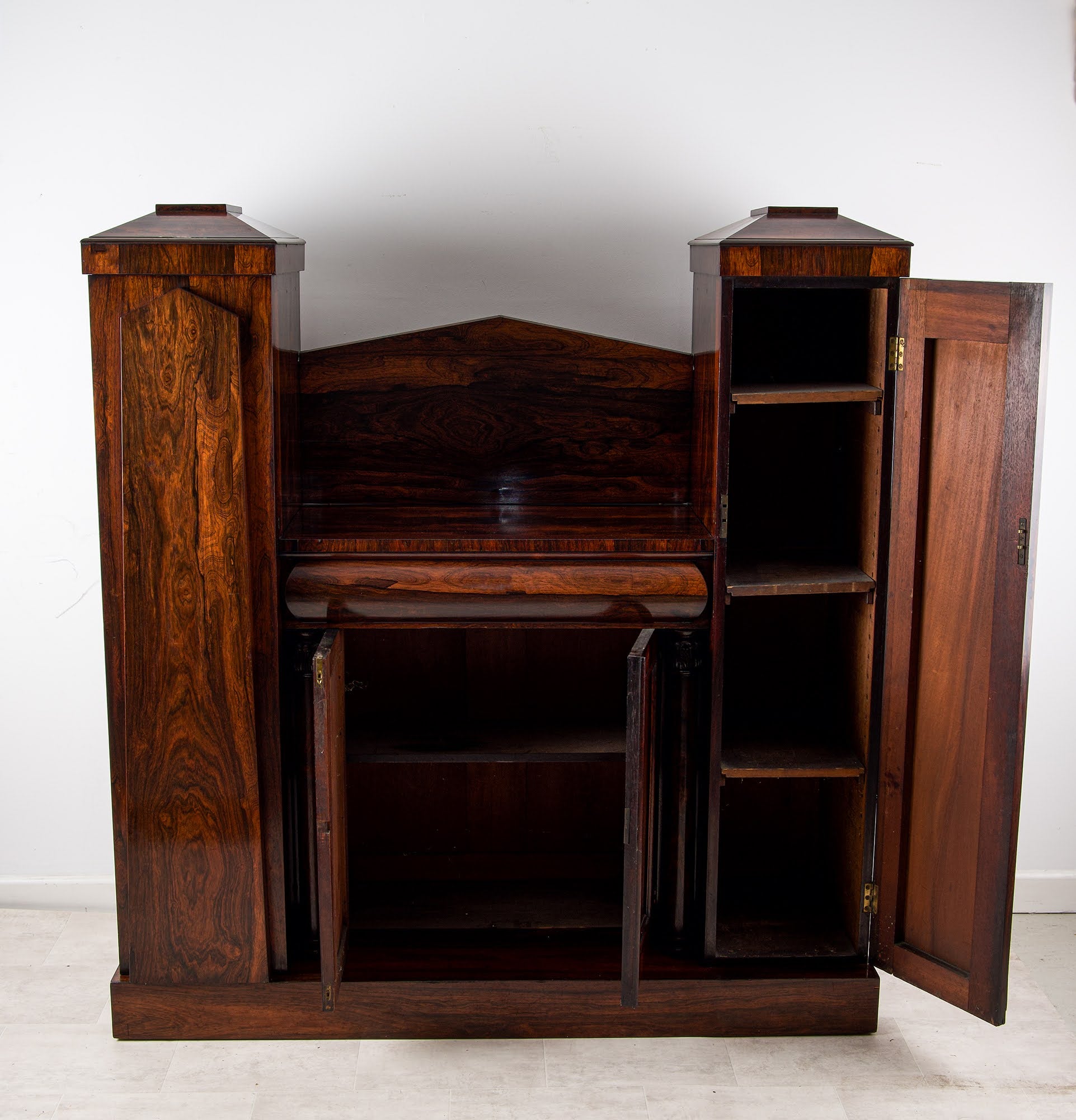 A fine and unusual Antique William IV rosewood side cabinet, dating from circa 1835, constructed in richly figured rosewood with exceptional colour and grain throughout.