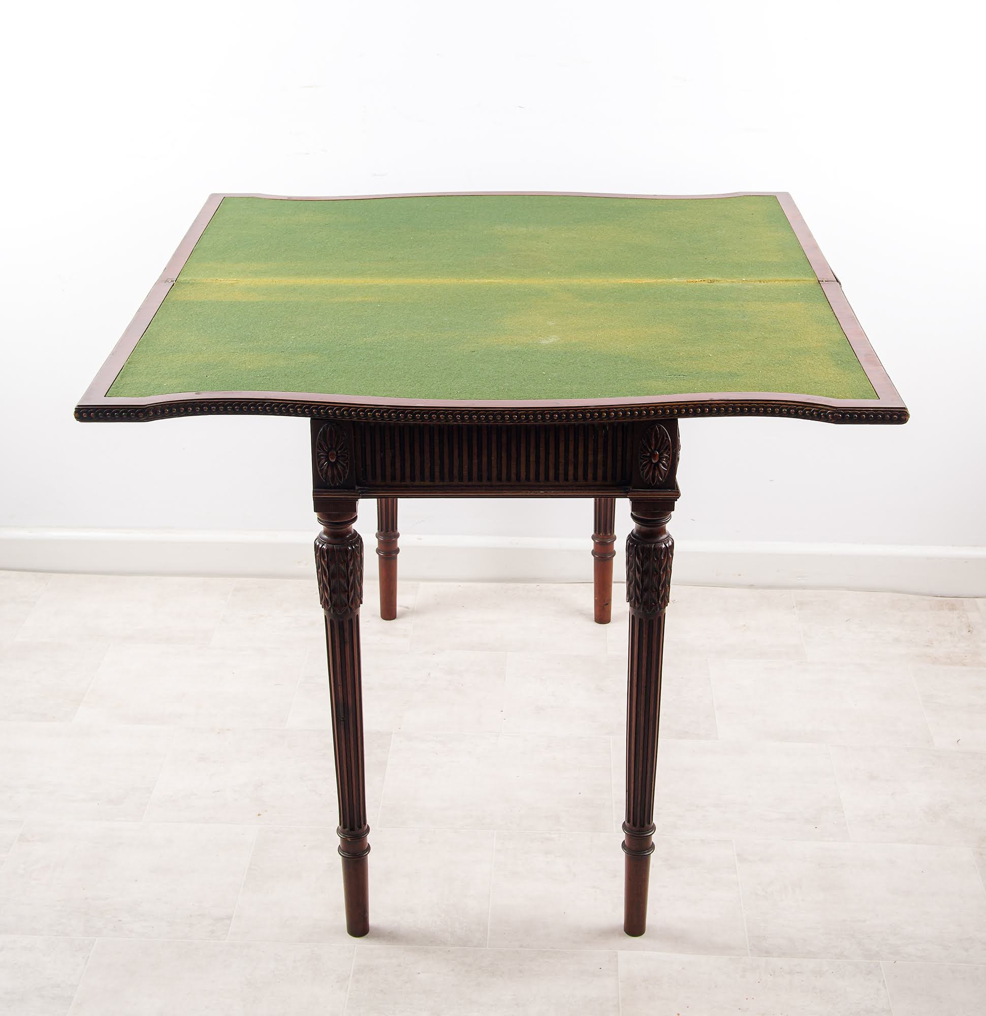 Condition Note: This table presents in excellent original condition. The mahogany retains its rich, warm colour and natural patina. The carved serpentine front and leg details are crisp and well-defined. The original green baize is intact. The fold-over mechanism operates smoothly. This is an honest description from a specialist dealer with 60+ years family experience - what you see in the photographs is exactly what you receive.